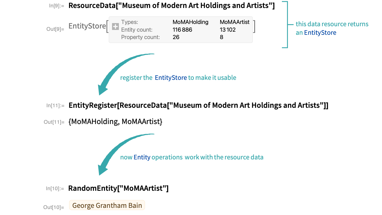 - If a data resource returns an EntityStore, you must register the entity store to use it. See details in the Notes section below.