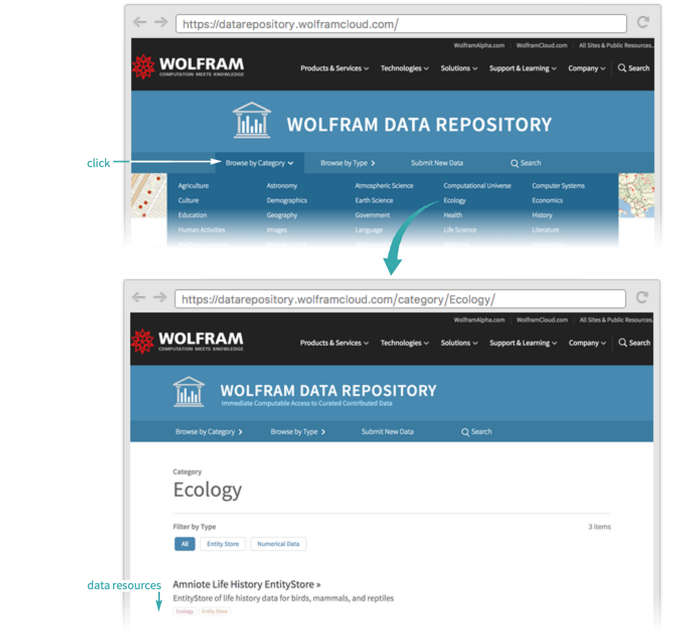 To browse rather than search, click Browse by Category at the top of the Data Repository home page and choose a category you are interested in: