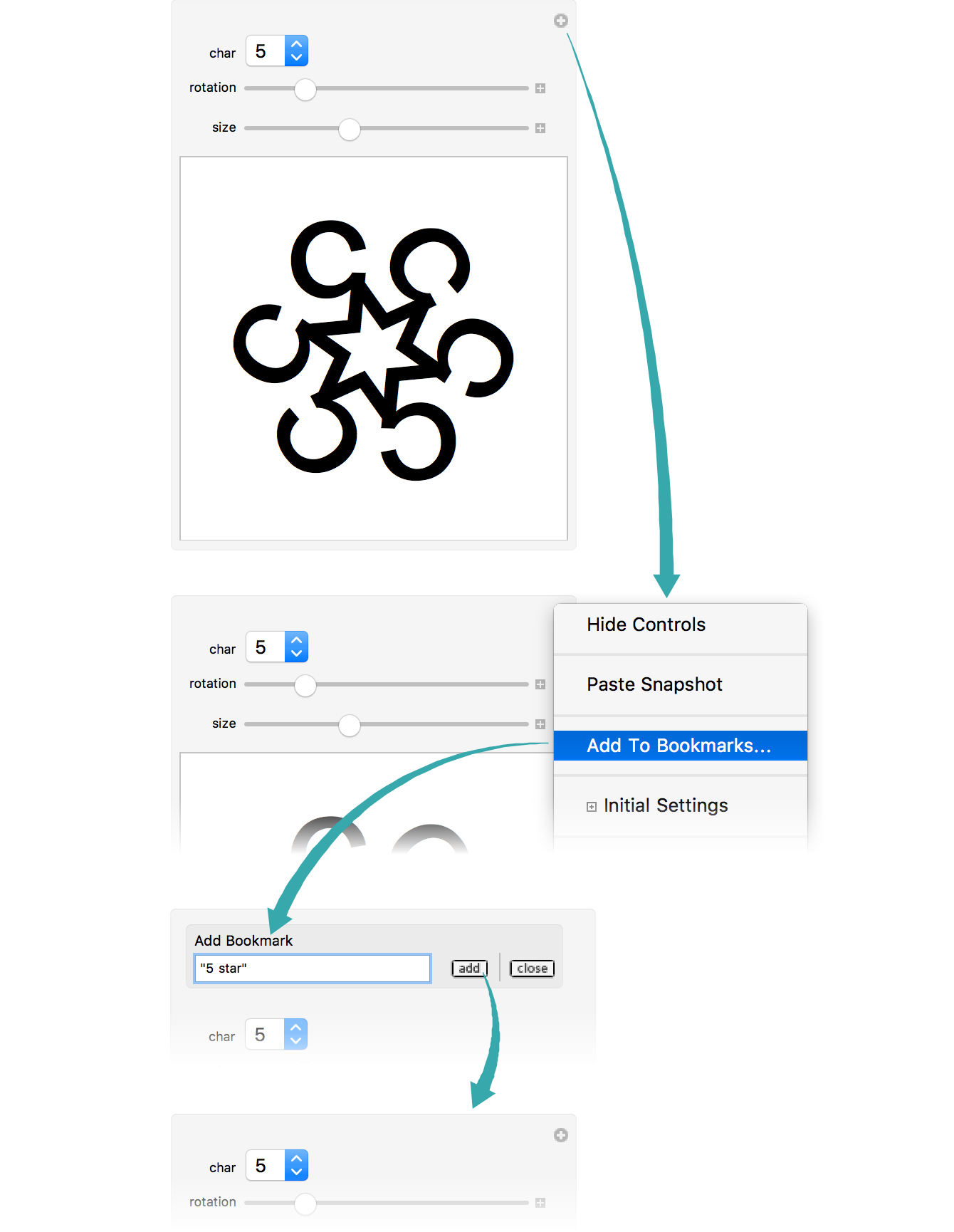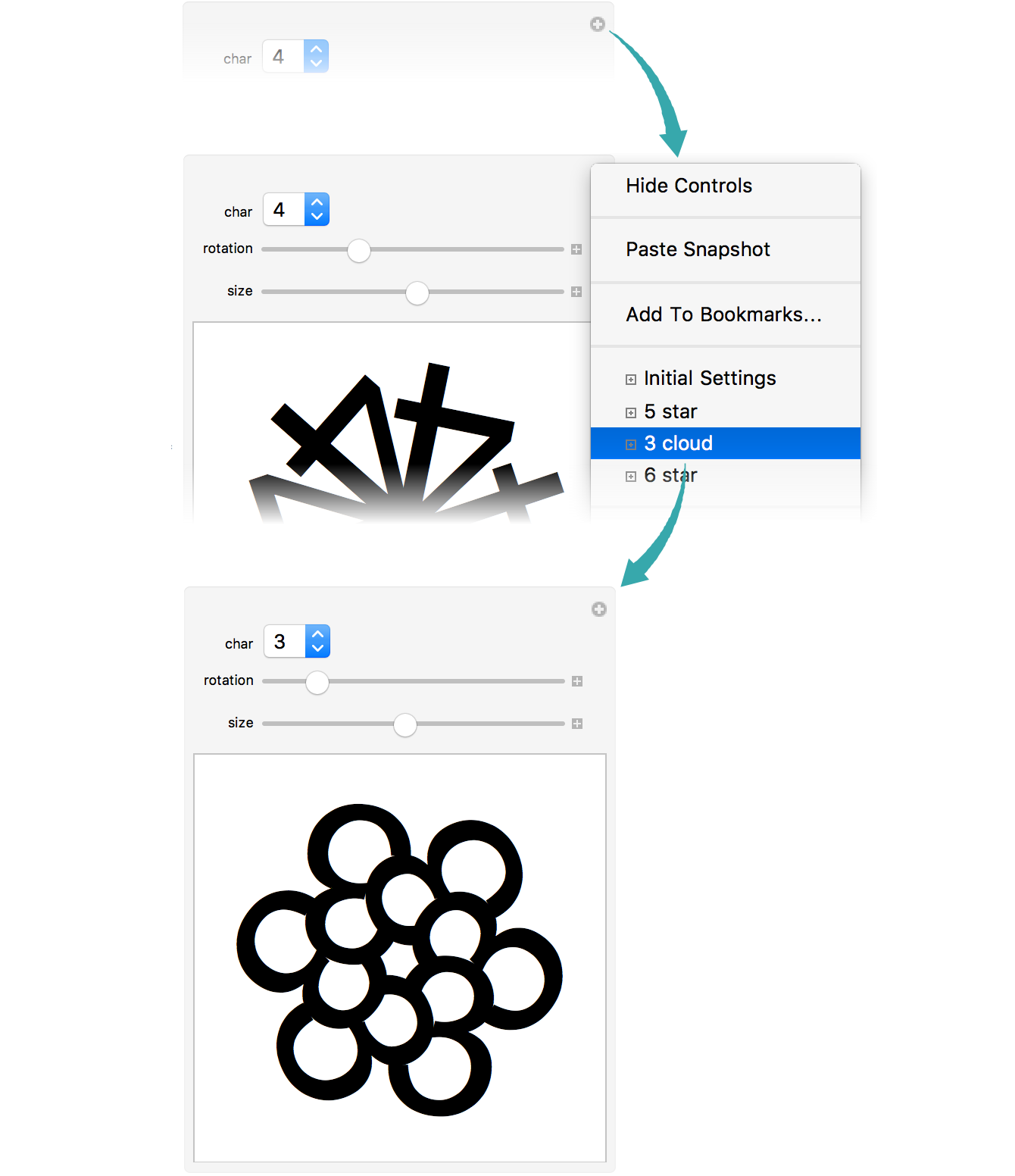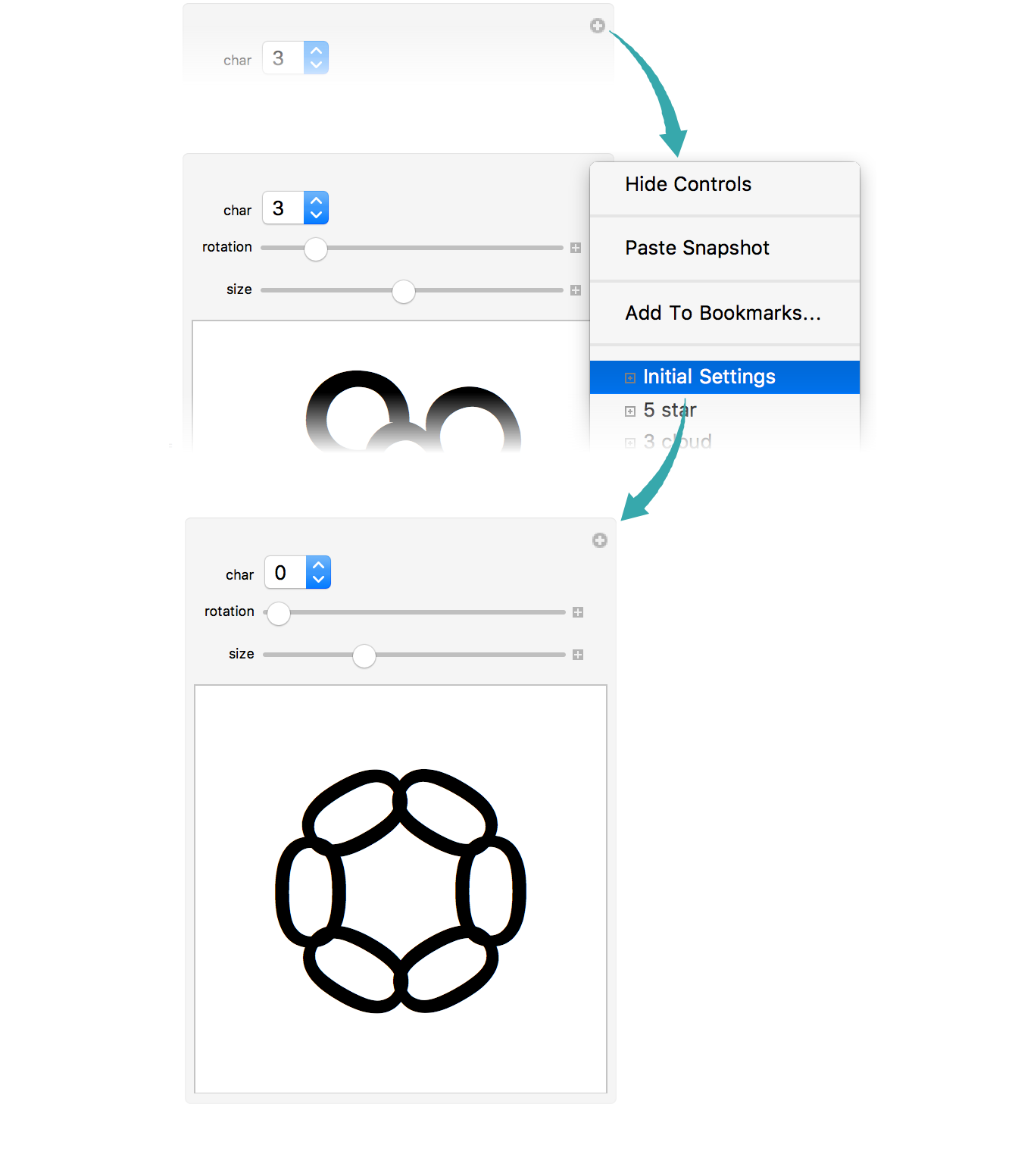 As you explore with a Manipulate, you can bookmark interesting combinations of settings with