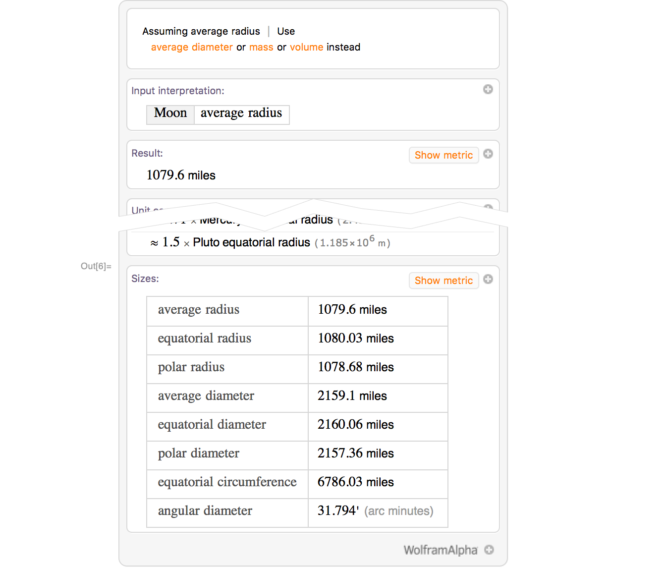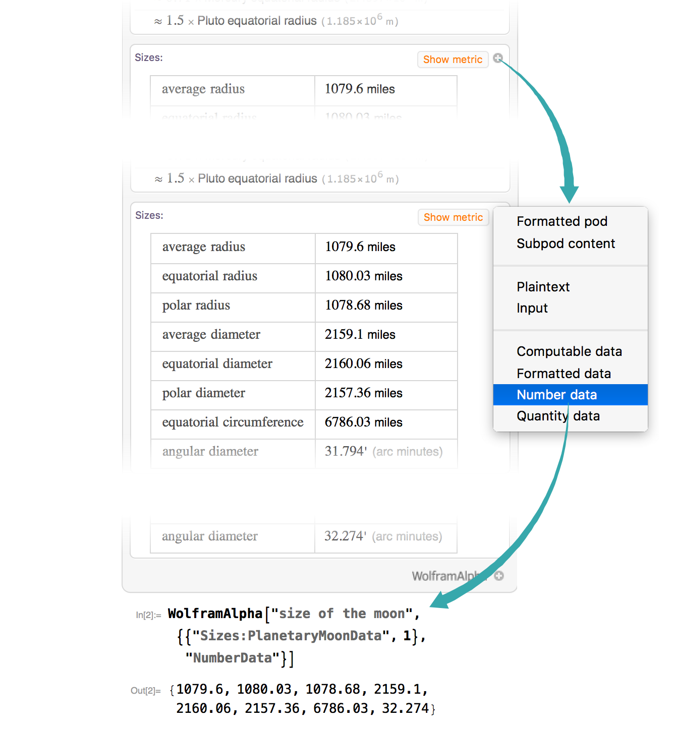 Optionally extract computable data from the Wolfram|Alpha output by clicking the plus icon (
