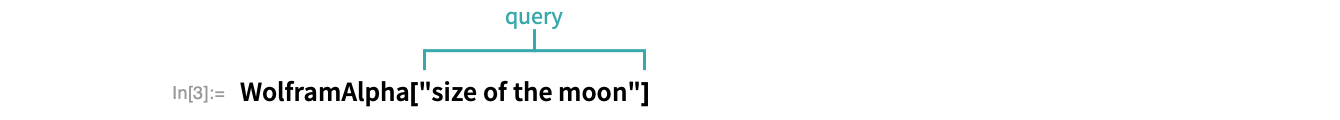 Query Wolfram|Alpha using the WolframAlpha function, giving the query as an argument: