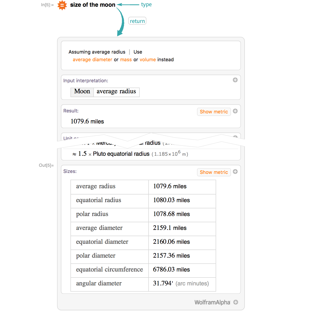 Enter a Wolfram|Alpha query and type