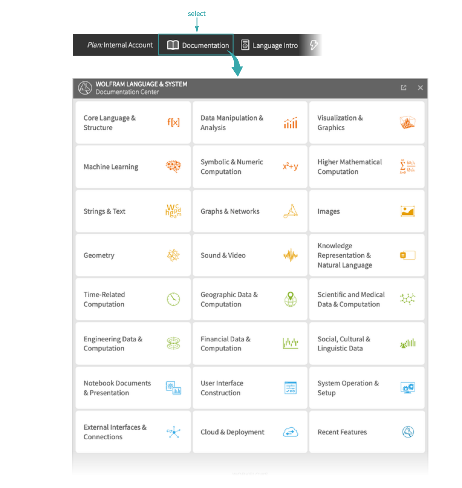 From the cloud menu, select “Documentation” to open the Documentation Center inside the cloud notebook interface: