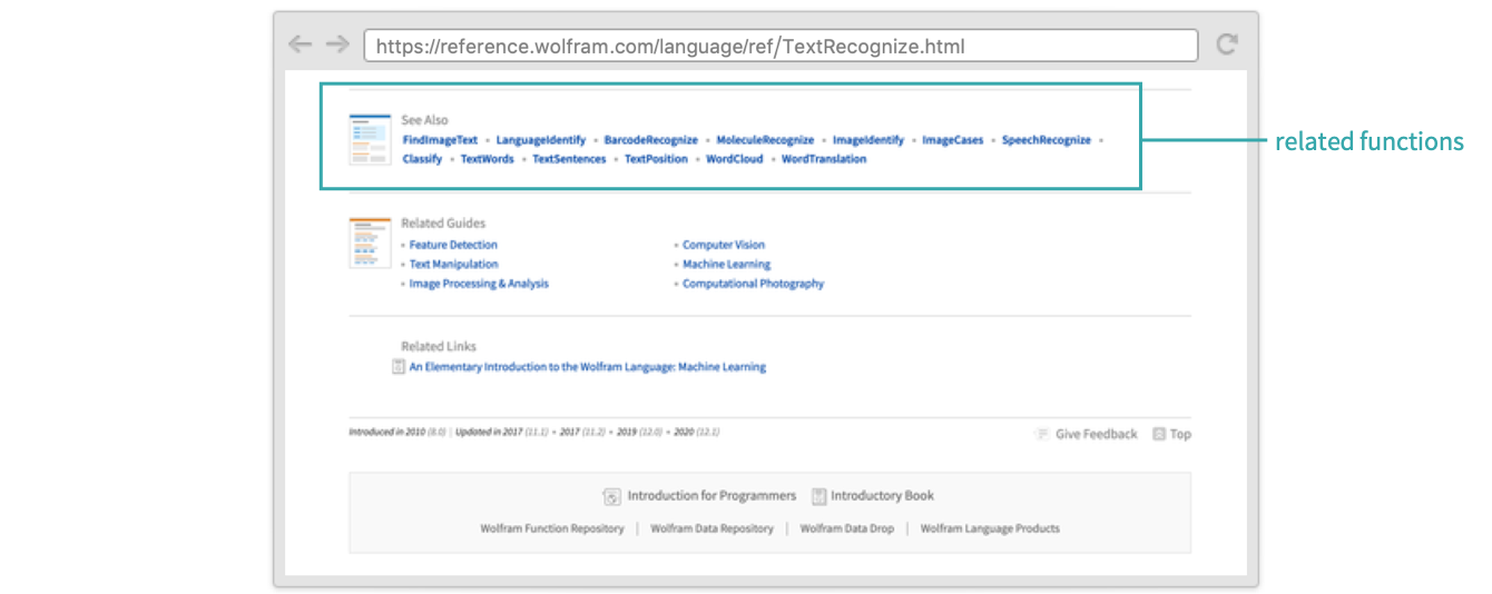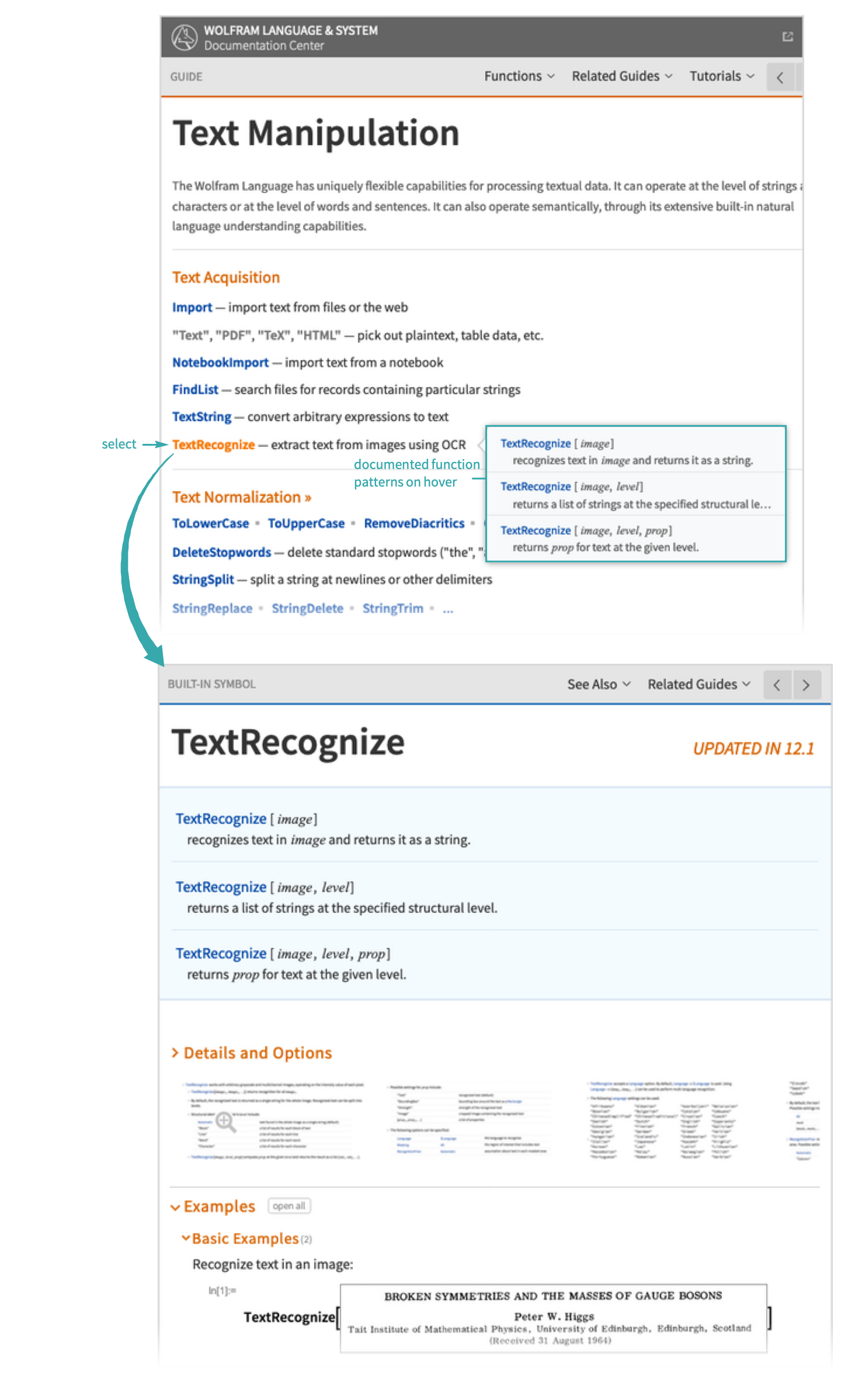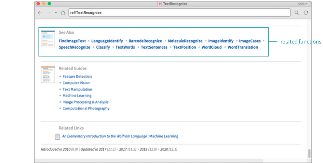 From the guide page, select the specific function you would like to know more about. In this case, TextRecognize:
