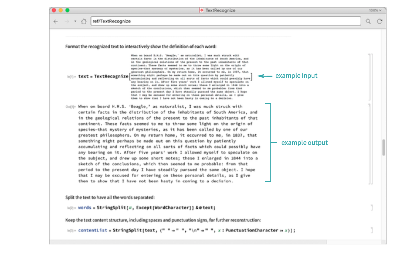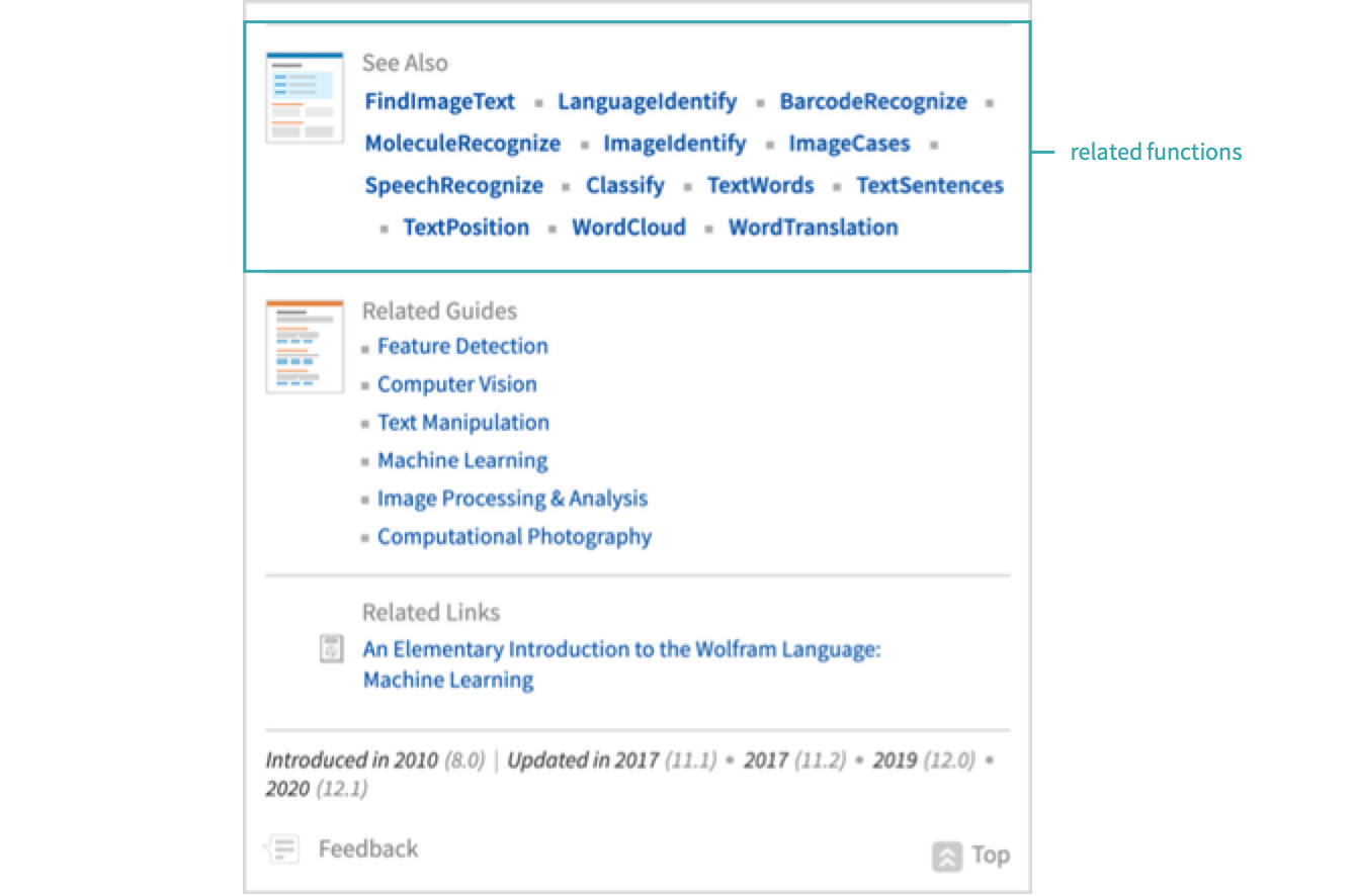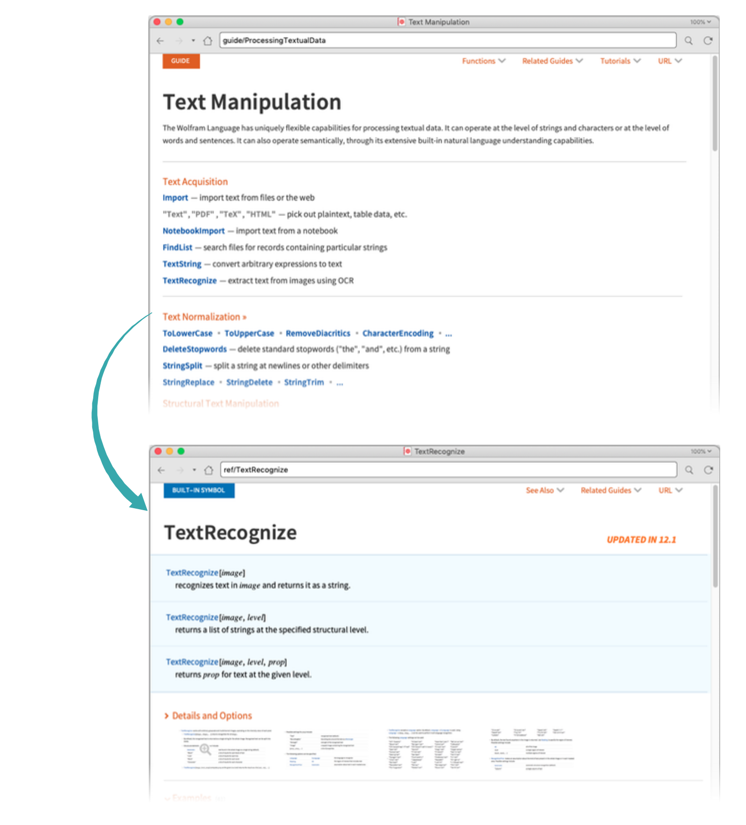 From the guide page, select the specific function you would like to know more about. In this case, TextRecognize: