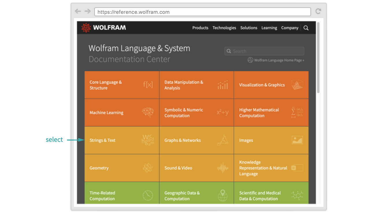On the home page, select the tile that corresponds to the general topic. In this case, “Strings and Text”:
