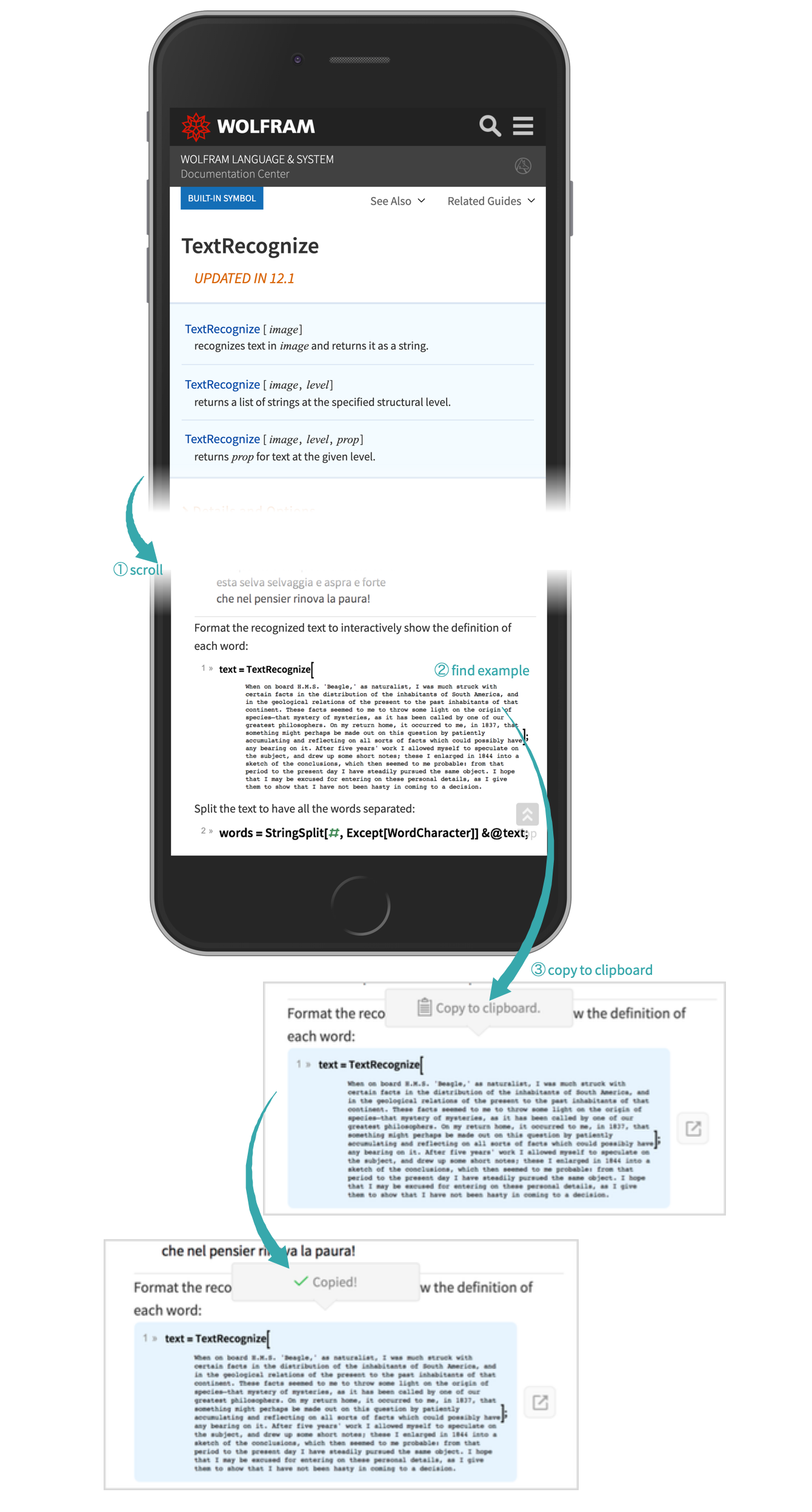 On the reference page, choose an example and tap to copy it to the clipboard: