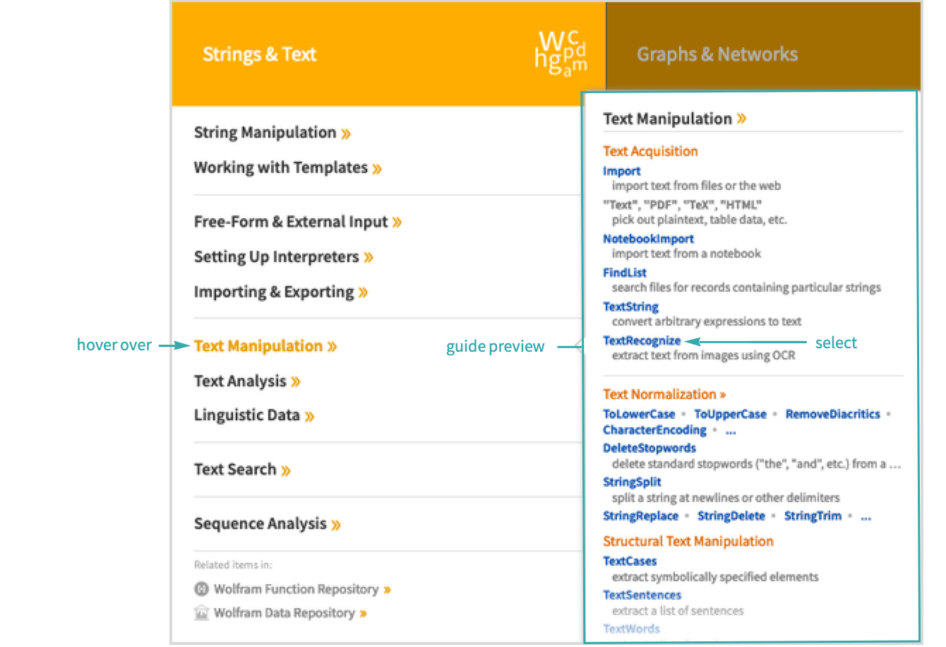 Once selected, hover over Text Manipulation to get a preview of the guide, then choose the function TextRecognize directly from the preview: