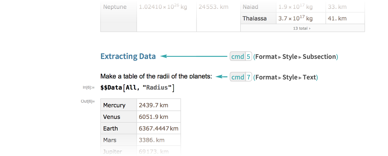 , or Format ▶ Style ▶ Text) and structure the examples with Subsection cells (