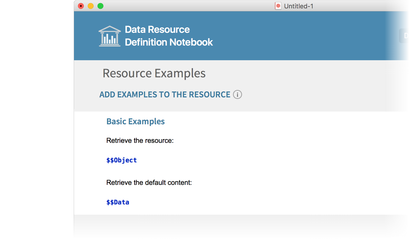 Two examples are provided for you, which you should evaluate. Do not delete these examples, since they give easy access from the data resource’s webpage to the resource object and its data: