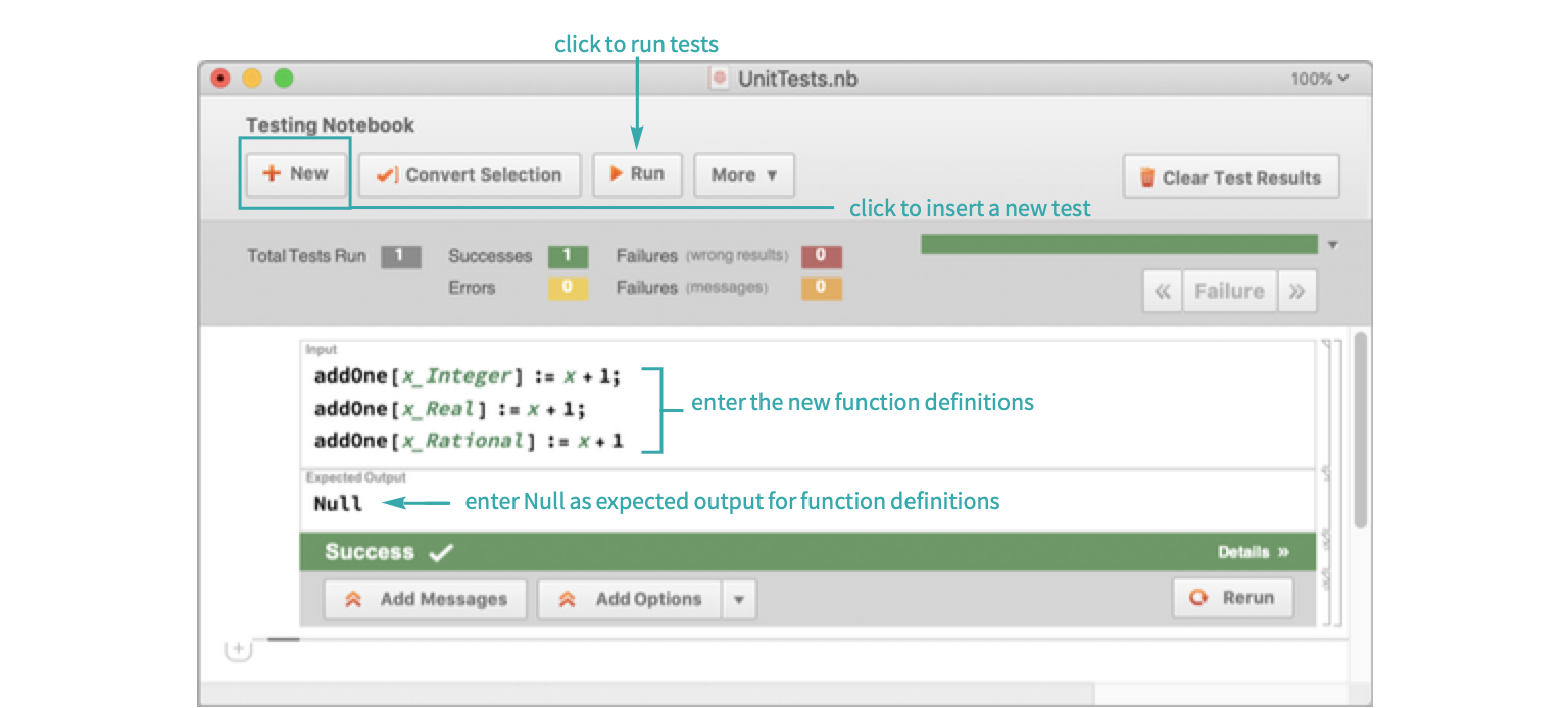 Open a new testing notebook by going into the file menu and choosing New ▶ Programmatic Notebook ▶ Testing Notebook. Create a function and overload it for multiple cases: